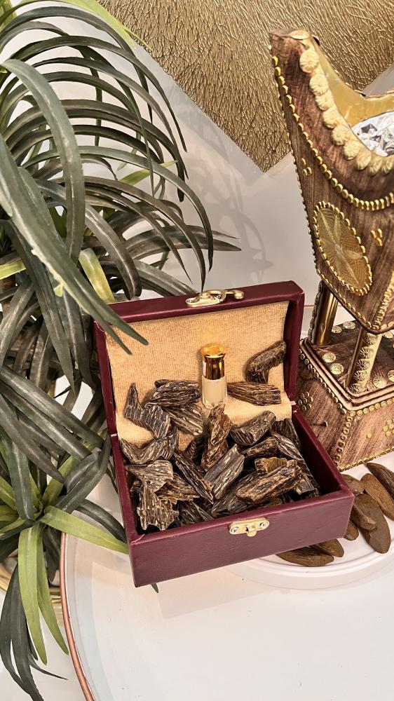 عرض بخور فاخر مكون من عود ازرق طبيعي المحسن وربع تولة مسك منوع هو الخيار المثالي لمحبي الفخامة والتميز و يتميز هذا العرض بخورا ذو رائحة مميزة وفواحة تضفي على المكان جوًا من الراحة والفخامة حيث يُعد العود الأزرق الطبيعي المحسن من أرقى أنواع العود المتاحة ذو رائحة بخورية قوية ودائمة تستمر طويلاً على الجمر و
